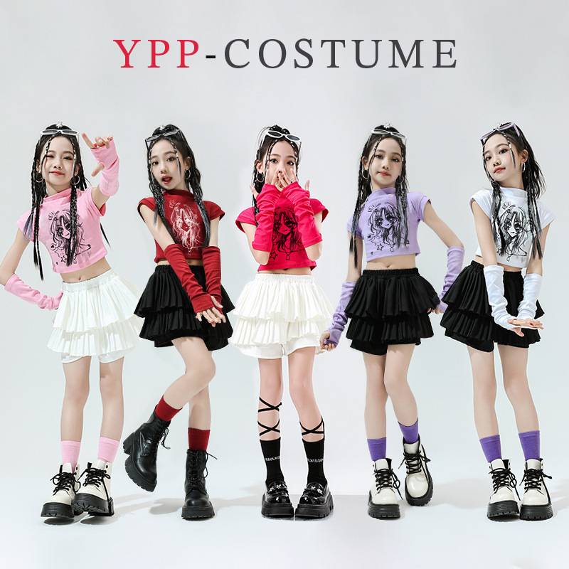 Kostum pertunjukan tari jazz anak perempuan, kostum model Hip hop grup wanita, kostum penampilan tari jazz, kostum mode