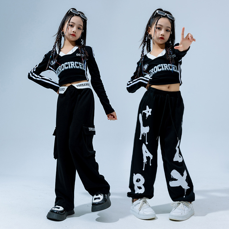Pakaian anak-anak, pakaian anak-anak baru musim gugur, Trendi keren, celana panjang lengan panjang, pakaian penampilan hip hop, baju dansa Jazz wanita, pakaian kelas performa