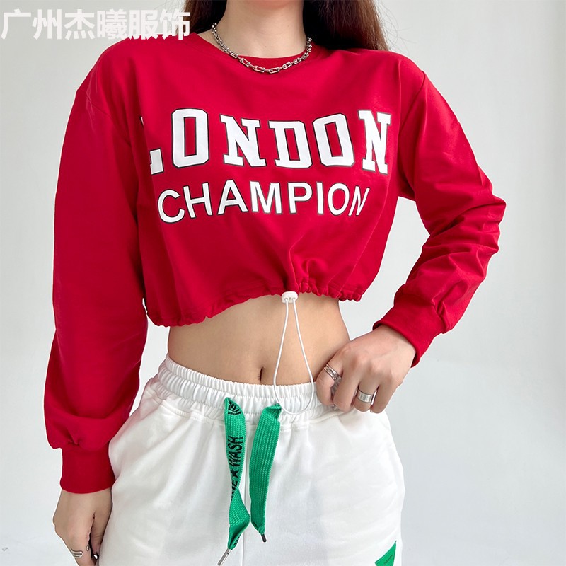 Real shot jazz dansa olahraga wanita, sweater pinggang musim gugur lengan panjang longgar chic mode jalan retro pinggang tinggi berjalan