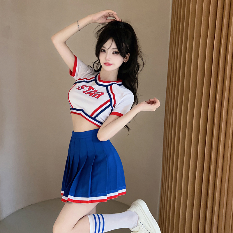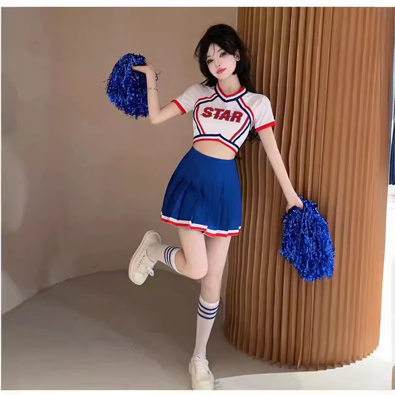 Kostum Cheerleader Seksi Ukuran S-XL WMHS Seragam Cheerleader Wanita Pertunjukan Grup Gadis Kostum Pertunjukan Tari COS