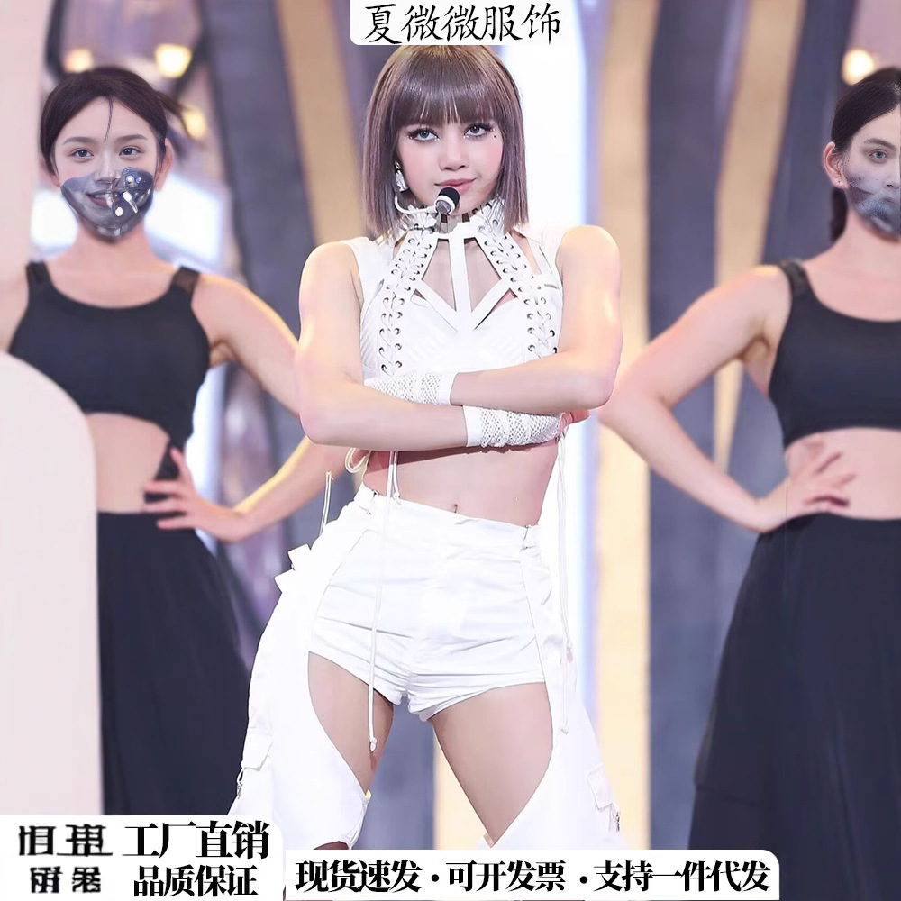 Pakaian Bernyanyi Warna Putih Grup Wanita Kpop Pakaian Pertunjukan Blackpink Model Sama dengan Lisa