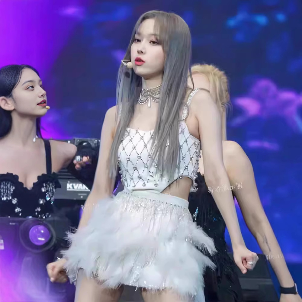 Kelompok wanita Korea Selatan ive Zhang Yuanying kostum penampilan yang sama rompi berlian gaun jala perspektif kostum panggung sebelas jazz