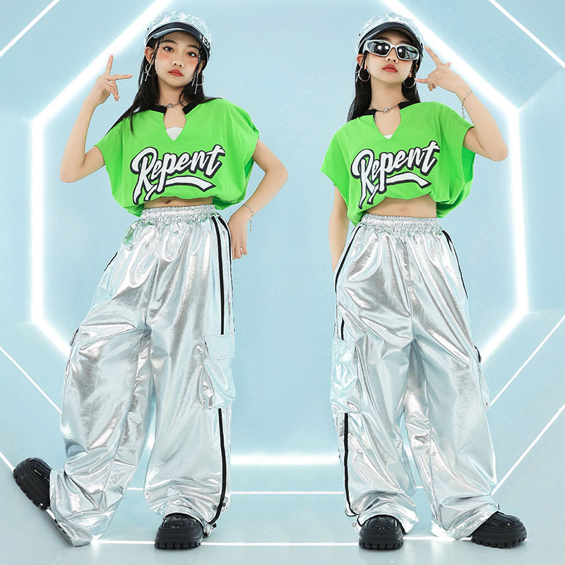Pakaian Pertunjukan Anak Perempuan Set Tari Jazz Anak Perempuan Trendi Musim Panas Wanita Keren Gaya Kelompok Rompi Tanpa Lengan Pakaian Gadis Pedas