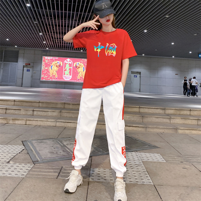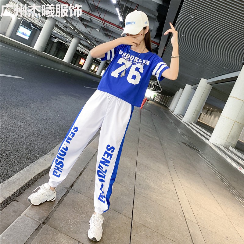 Pakaian musim panas dengan satu set fashion Eropa kasual olahraga setelan perempuan musim panas modis fashion fashion