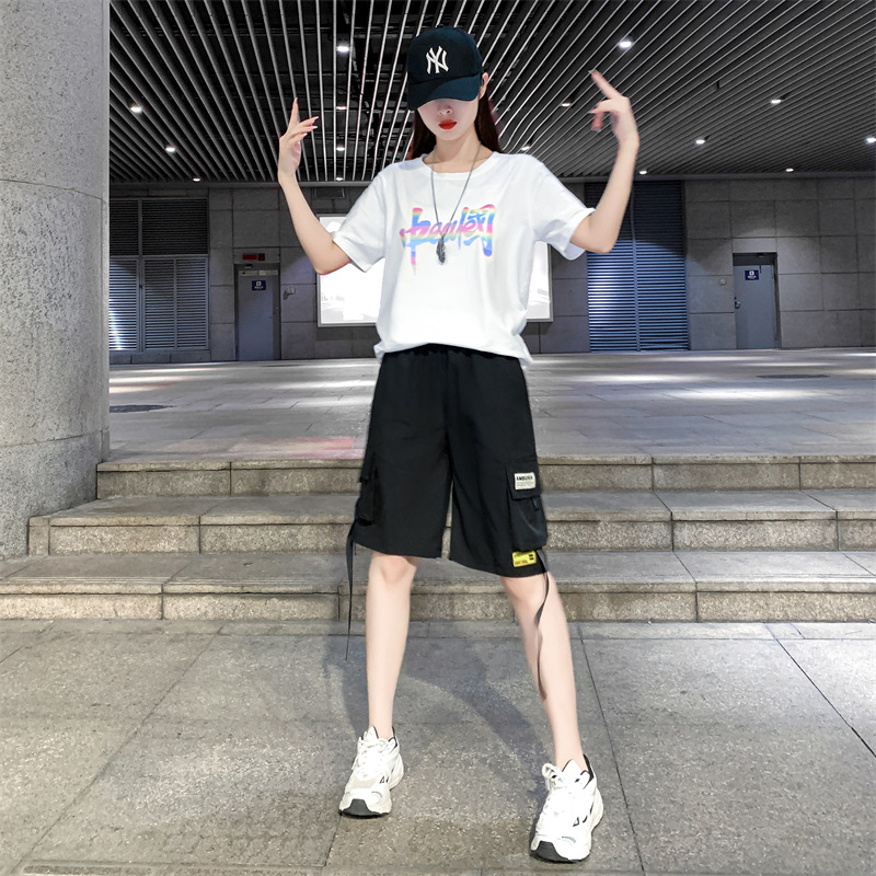 Pakaian olahraga kasual wanita dua potong, pakaian setelan olahraga musim panas SMP gaya Korea longgar mode 2024