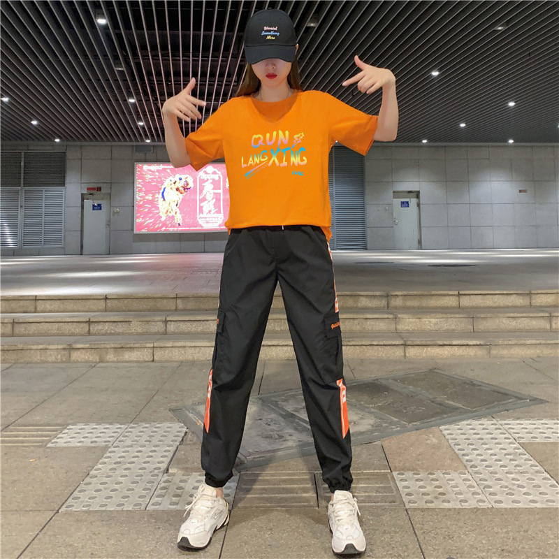 Pakaian dansa persegi wanita, pakaian lari hip hop kasual dengan set Musim Panas 2024