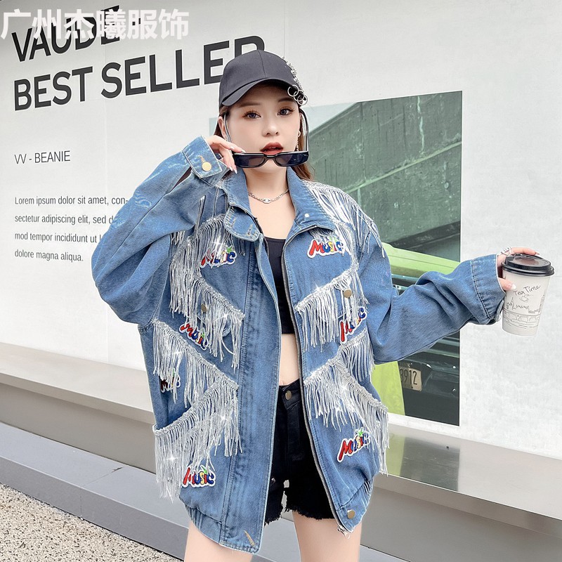 Gaya Eropa musim gugur 2023 gaya Korea elegan kasual rumbai payet fitur plus ukuran mantel serbaguna pakaian wanita