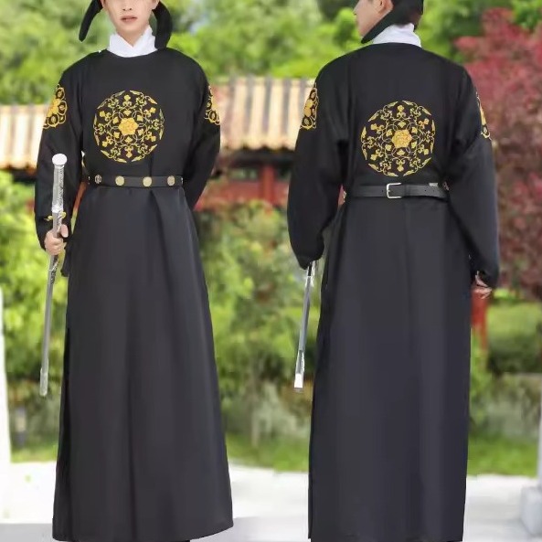 Hanfu jubah kerah bulat pria, jubah mahasiswa sarjana seni bela diri tampan, pemulihan gaya China kuno