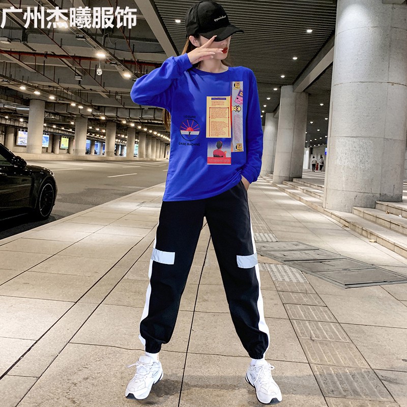 Real shot setelan olahraga dua potong, pakaian pelangsing longgar musim gugur 2023