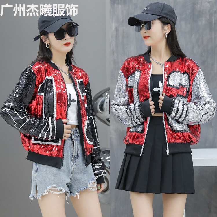 Seragam bisbol selebriti Internet berpayet untuk wanita, jaket jalan goreng populer musim gugur 2023 longgar gaya korea musim semi dan musim gugur