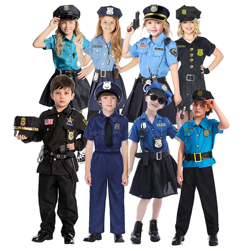 Pakaian Hari anak-anak, seragam polisi kinerja panggung pria dan wanita, pakaian cosplay polisi taman kanak-kanak