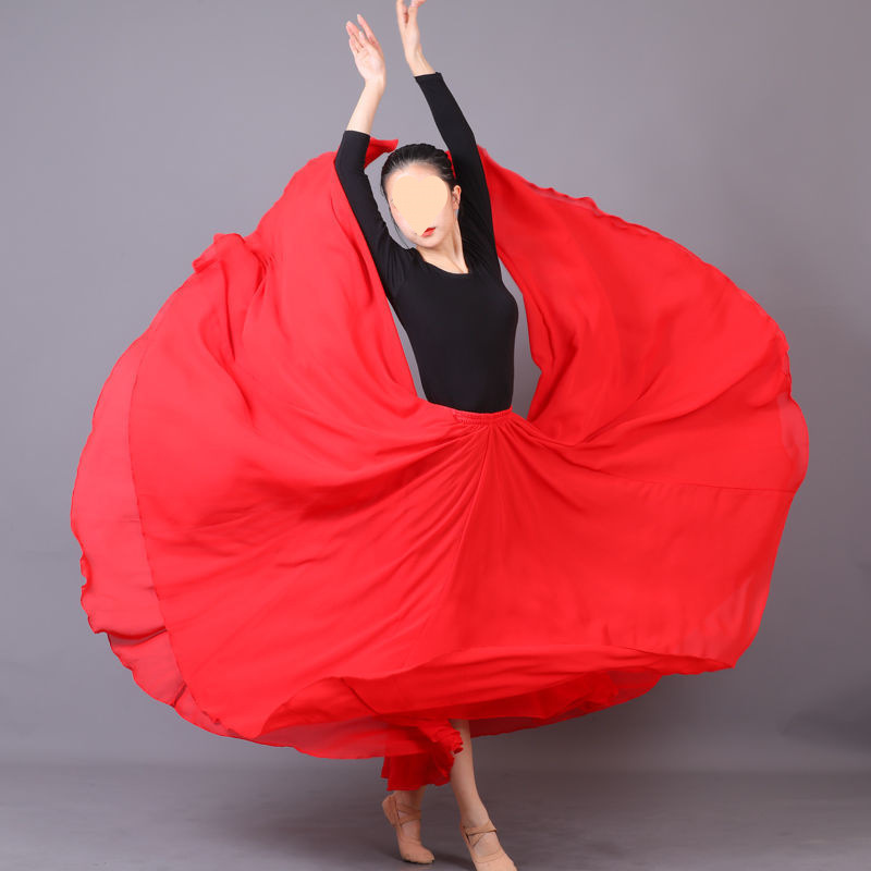 Rok Tari Rok Besar Sifon Lapisan Ganda 720 Derajat Rok Latihan Tari Klasik Wanita Rok Setengah Badan Tari Lapangan Nasional Rok Panjang