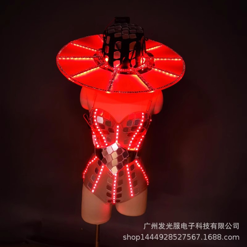 Jumpsuit wanita payet LED, warna-warni bercahaya topi akrilik bar GOGO pakaian pentas panggung