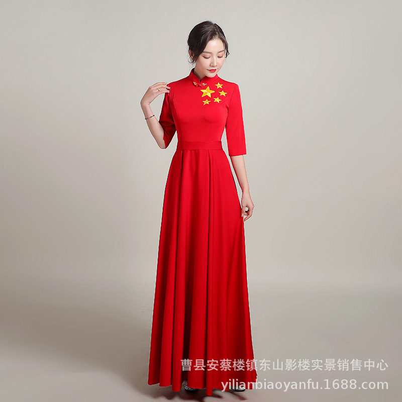 Kostum pertunjukan kafan perempuan gaun tuan rumah konduktor kompetisi lagu merah patriotik bangunan pesta kostum performa musim panas