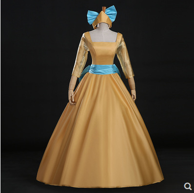 Kostum emas cosplay anime wanita dewasa, kostum pertunjukan