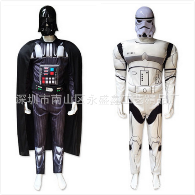 Kostum cos Star Wars dewasa baju Darth prajurit hitam anak-anak kostum jam tangan alien tentara putih
