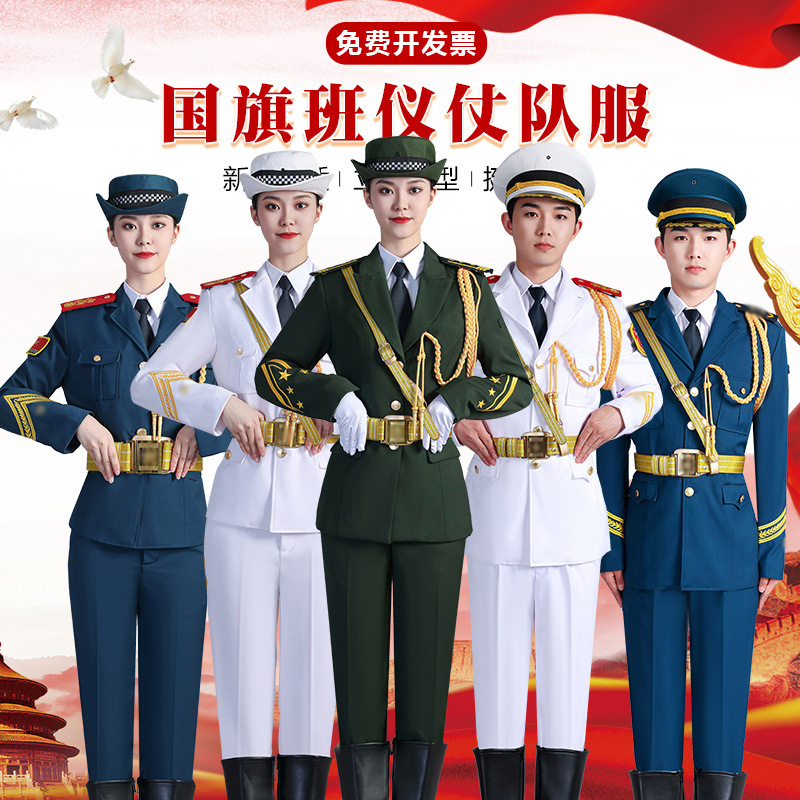 Pakaian siswa bendera pengangkat bendera bendera nasional pelindung kelas Army drum seragam setelan Musim Semi Pria dan wanita kinerja kostum