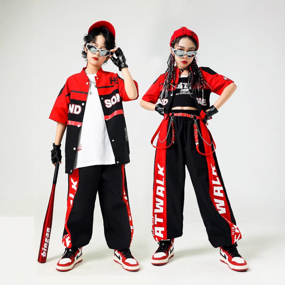 Pakaian Pertunjukan Hip-Hop Anak-Anak Pakaian Hip-Hop Anak-Anak Pakaian Sepeda Motor Anak Laki-laki Fashion Dance Jazz Anak Perempuan