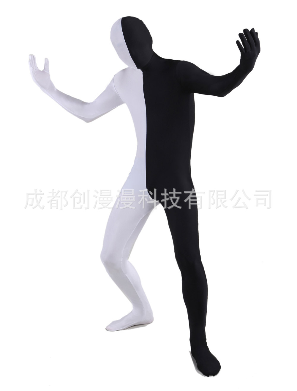 Semua termasuk celana ketat Cina Lycra zentai hitam dan putih Lycra jahitan ketat bermain kostum tari