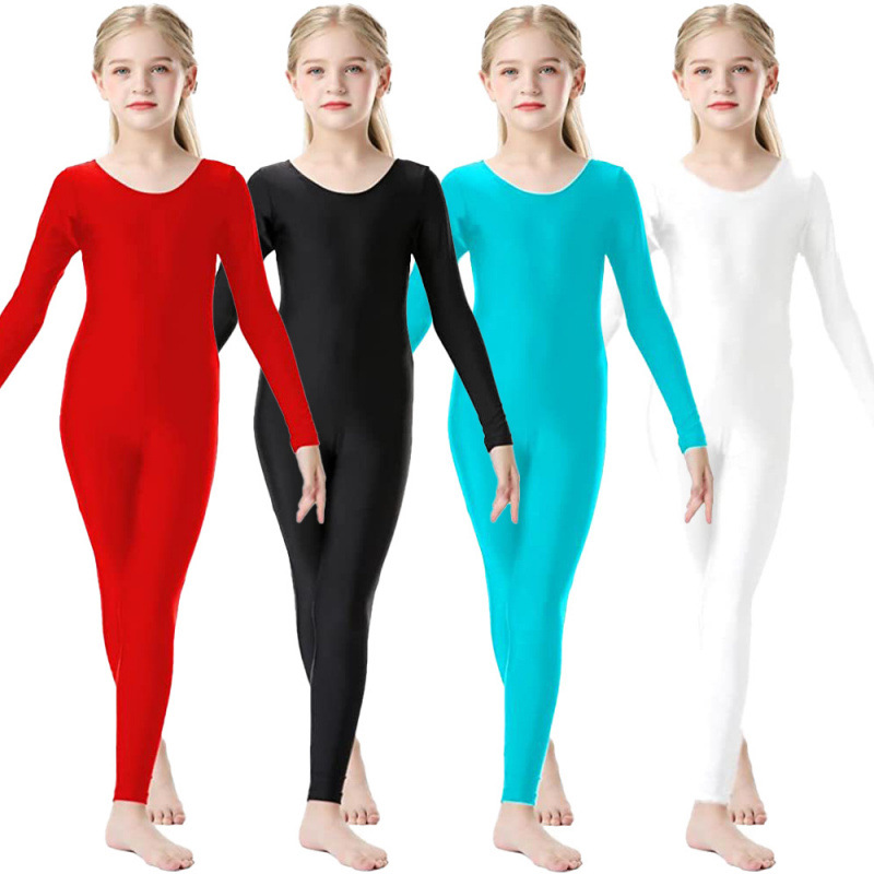 Penjualan Crossborder Anak Perempuan Kerah Bulat Lengan Panjang Baju Ketat Anak Perempuan Warna Solid Panggung Pertunjukan Tari
