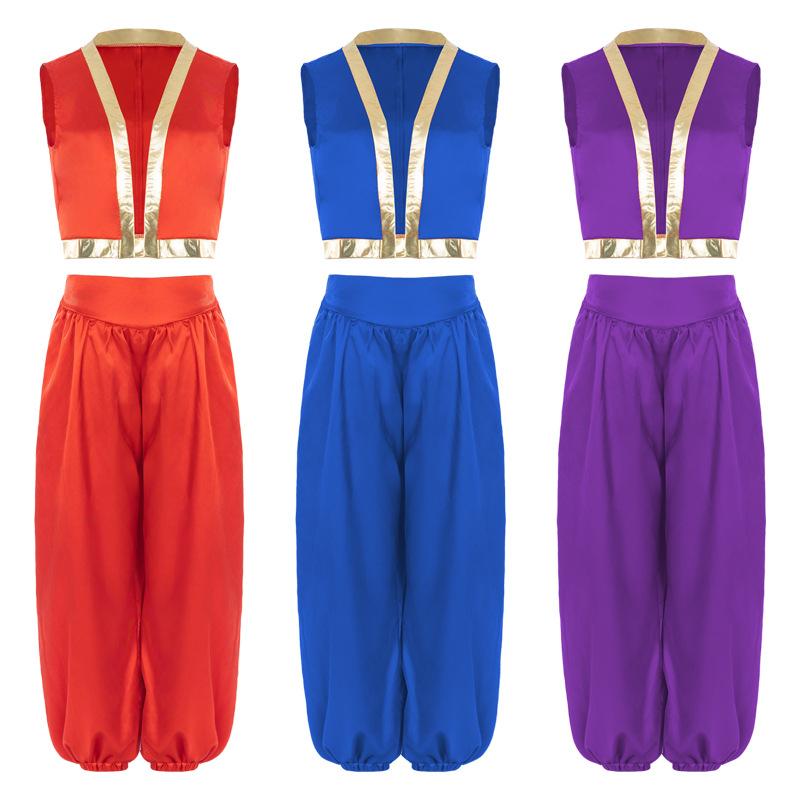 Pakaian tari perut baju penampilan panggung baju dansa lengan pendek celana sorot penampilan tari India dewasa setelan latihan