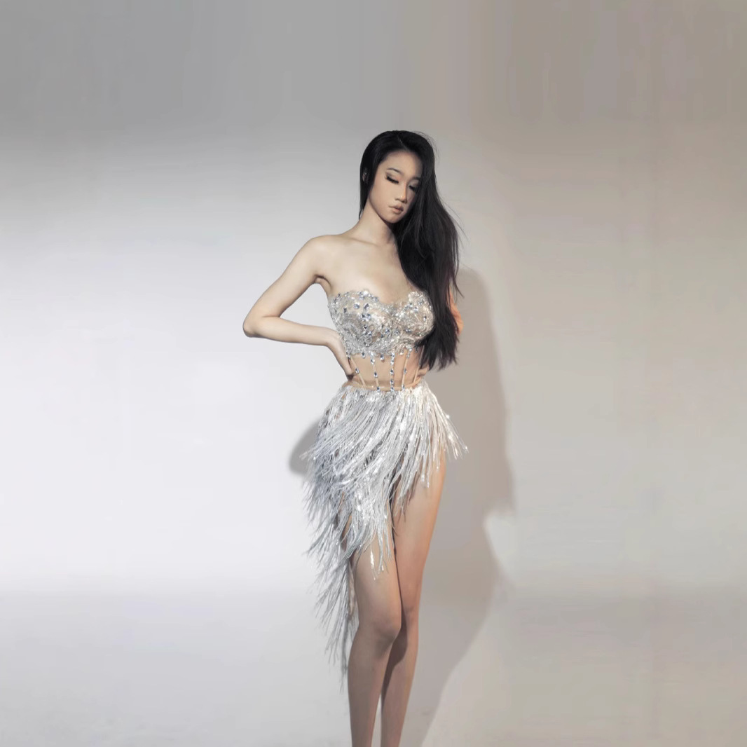 Baju Atasan Berlian Imitasi Berkilau Model Baru Lintas Batas Rok Pendek Setelan Dua Potong Gaun Pesta Pesta Ulang Tahun Selebriti Pakaian Pertunjukan