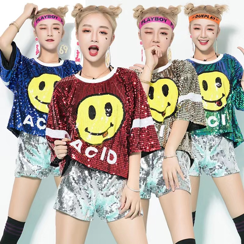 DS baju dansa jalanan, atasan kaus jazz lengan pendek, baju pentas DJ longgar, hip hop, baju dansa jalanan, baru