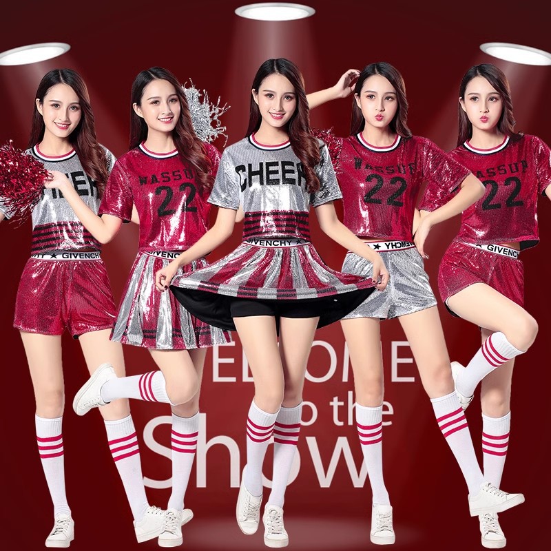 Pemandu sorak kostum penampilan pemandu sorak kostum dansa jazz wanita kostum aerobik payet tari modern kostum pertunjukan DS dewasa