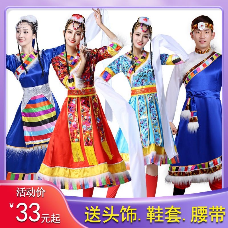 Kostum Pertunjukan Tari Xizang Kostum Minoritas Lengan Air Dewasa Wanita Panggung Pertunjukan Tari Lapangan Lengan Pendek Panjang