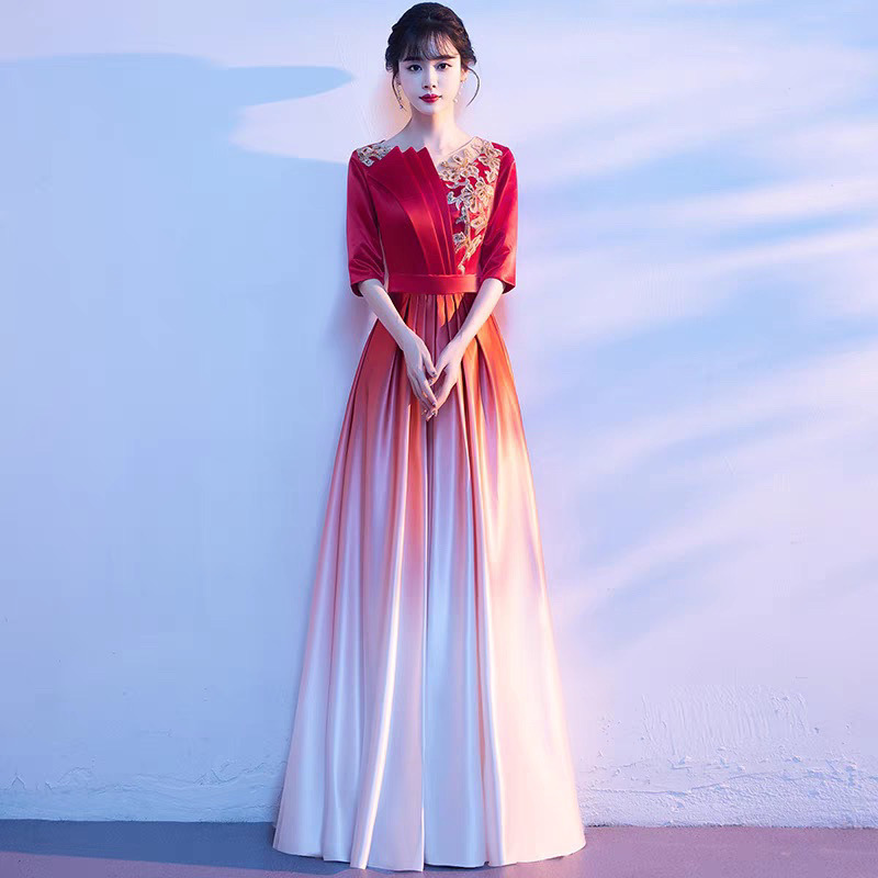 2025 Pakaian Pertunjukan Paduan Suara Siswa Model Baru Pakaian Pertunjukan Puisi Pembacaan Kontes Lagu Merah Dewasa Wanita Gaun Panjang