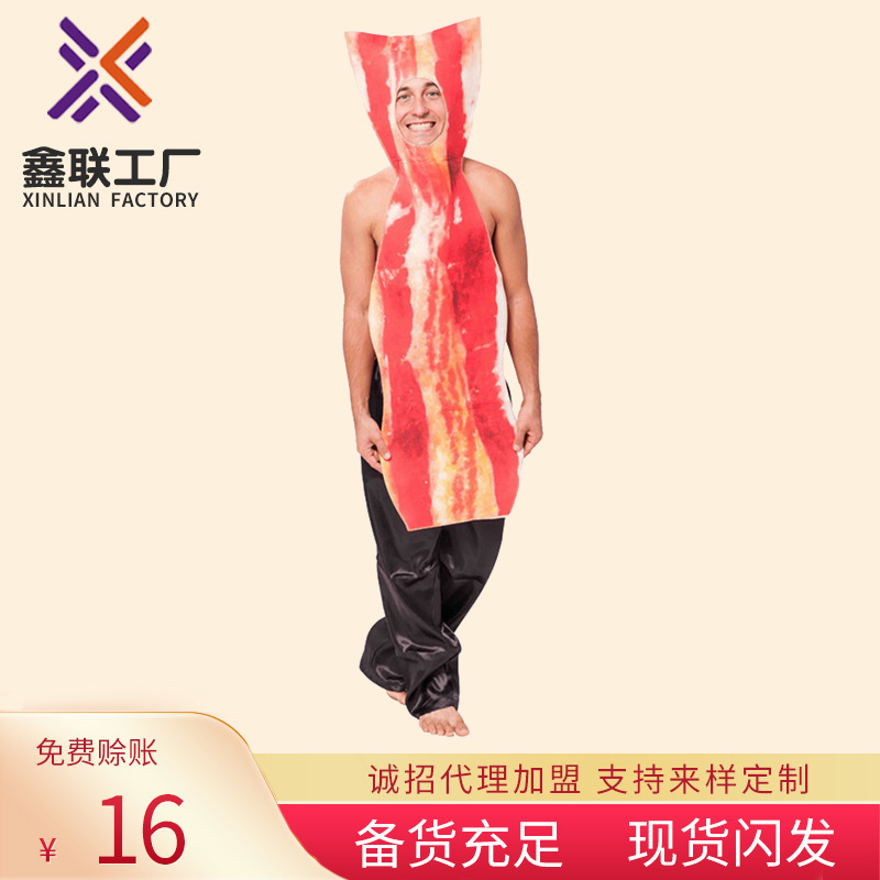 Kostum topeng cosplay Halloween karnaval kostum panggung pertunjukan pria kostum bacon dewasa