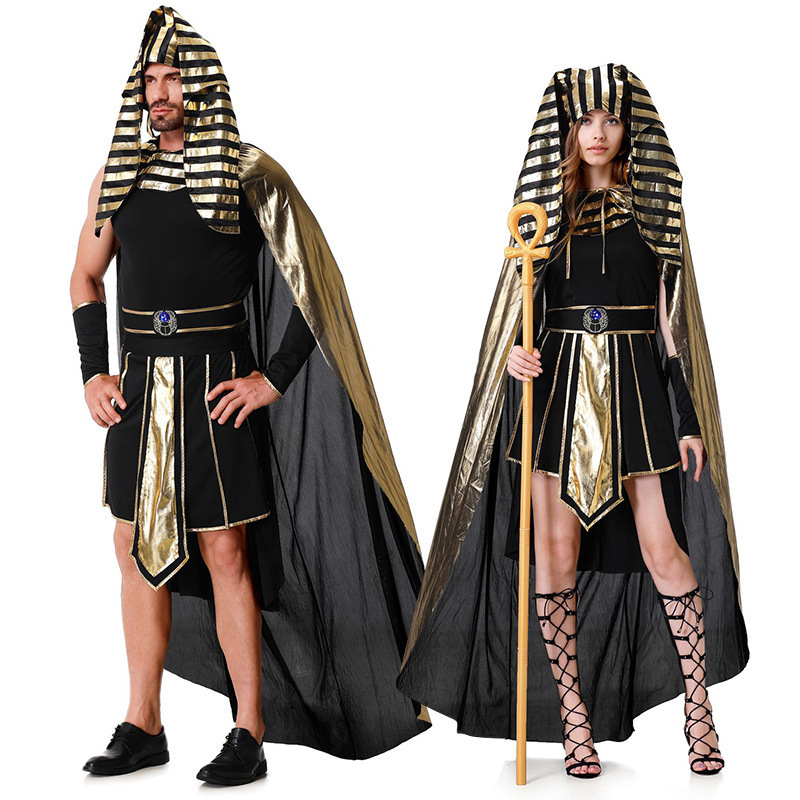 Crossborder Halloween Cos Kostum Firaun Cleopatra Pasangan Pria dan Wanita Yunani Kuno dan Raja Romawi