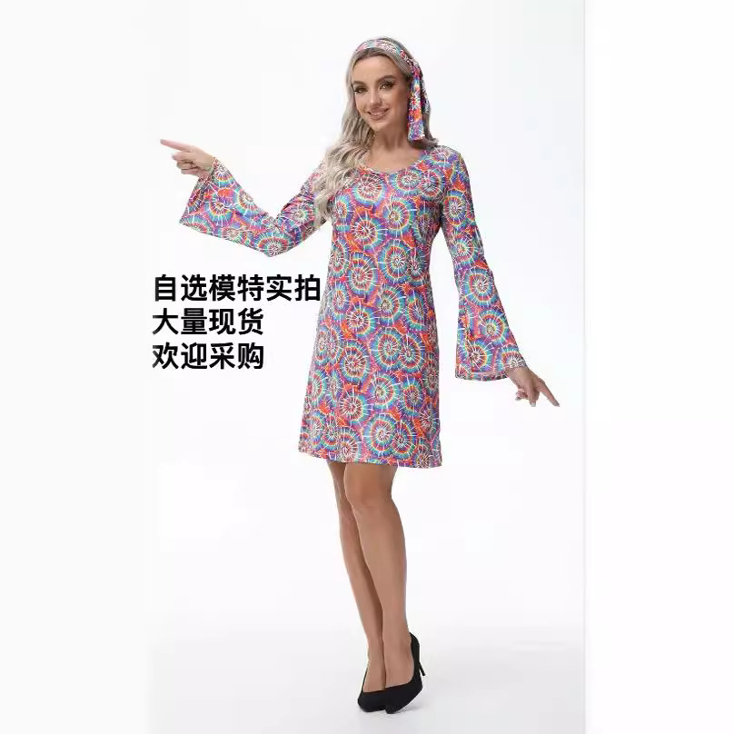 2024 Lintas Batas Amazon AliExpress Model Baru Musim Panas Pakaian Pertunjukan Hippies Modis Eropa dan Amerika Model Pilihan