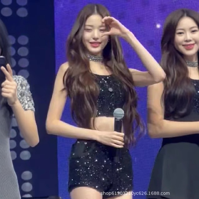 Setelan Celana Pendek Sling Berpayet Warna Hitam Model Sama dengan Live Zhang Yuanying