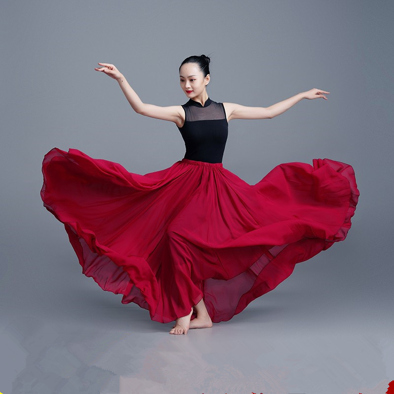 Rok ayun dansa klasik pakaian latihan tari Xinjiang ROK latihan dansa rok panjang kinerja gaya etnik rok kasa setengah panjang