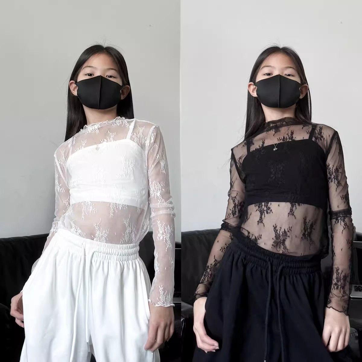 Atasan Lengan Panjang Slim Fit Dalaman Renda Anak Perempuan Trendi T-shirt Pertunjukan Tari Jazz Pakaian Pertunjukan Tari Kelompok Anak Perempuan