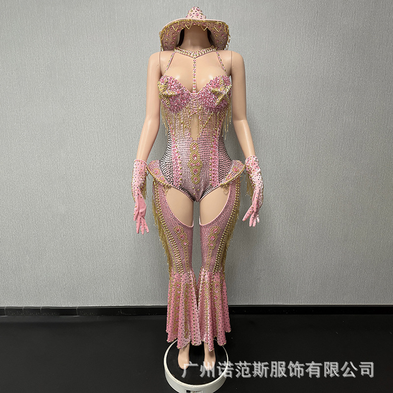 Pakaian Pertunjukan Malam Panggung Tiga Potong Berlian Paku Seksi Gaya Eropa Amerika Pakaian Pertunjukan Gogo Bar Wanita