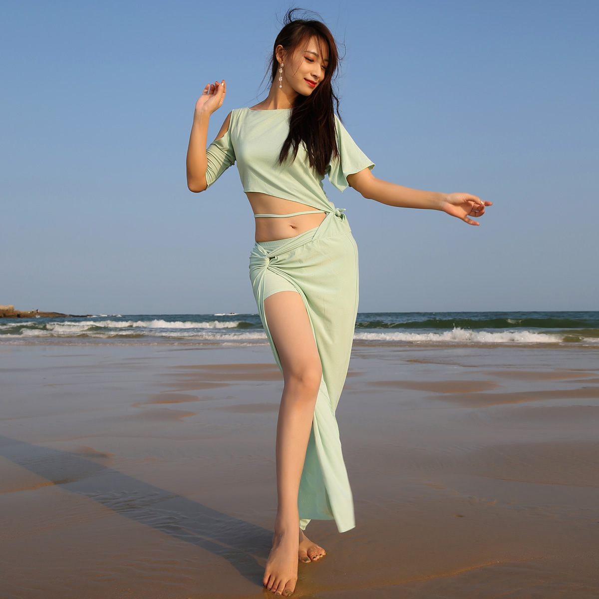 Setelan rok pinggang transparan Organza, setelan tari perut, pakaian latihan, dekorasi pinggang, setelan musim panas
