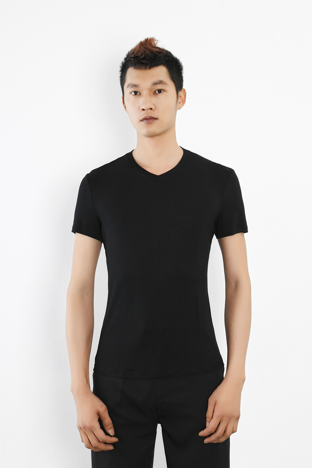 Pakaian dansa latin kerah V untuk pria, pakaian tari modern, pakaian latihan tari persegi, lengan pendek untuk pria