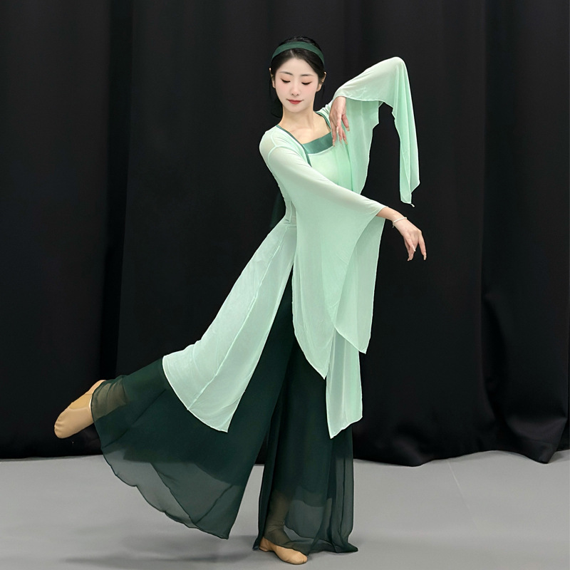 Pakaian Latihan Tari Klasik Pakaian Sajak Tubuh Pakaian Pertunjukan Lengan Panjang Musim Semi dan Musim Panas Pakaian Tari Tari Cheongsam Tari Tiongkok Setelan Wanita