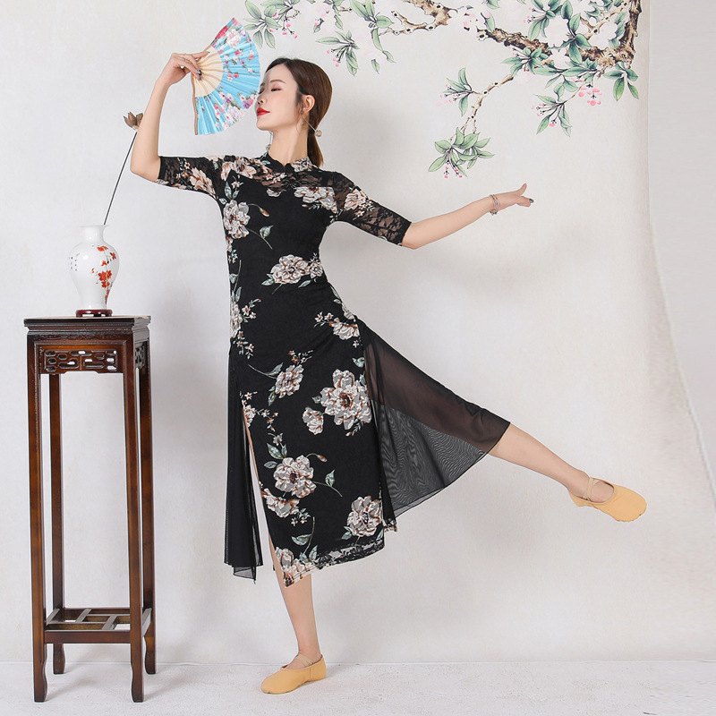 Gaun panjang Model Tiongkok, baju jam tangan cheongsam, baju panjang, baju latihan tari tubuh, baju penampilan, Waring split, gaya China, baru
