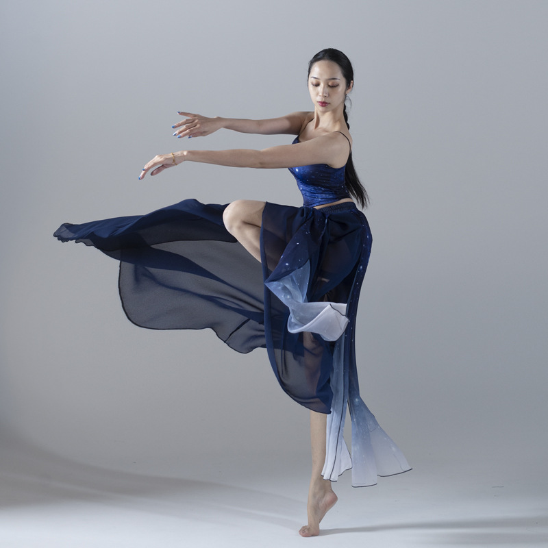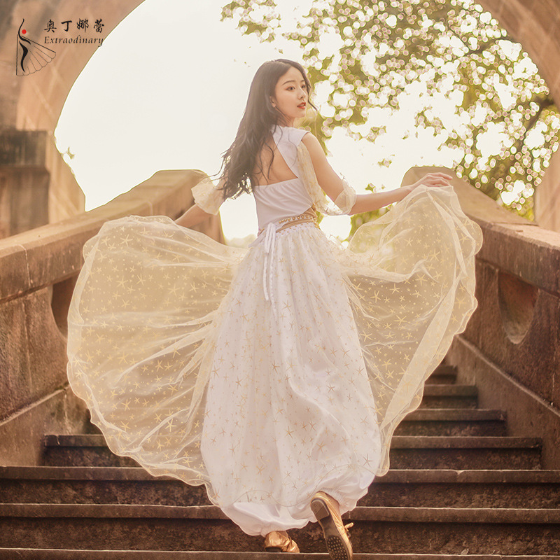 Pakaian dansa klasik rok lebar ayunan besar pinggang elastis elegan peri sorot langit berbintang wanita pakaian latihan tari Cina