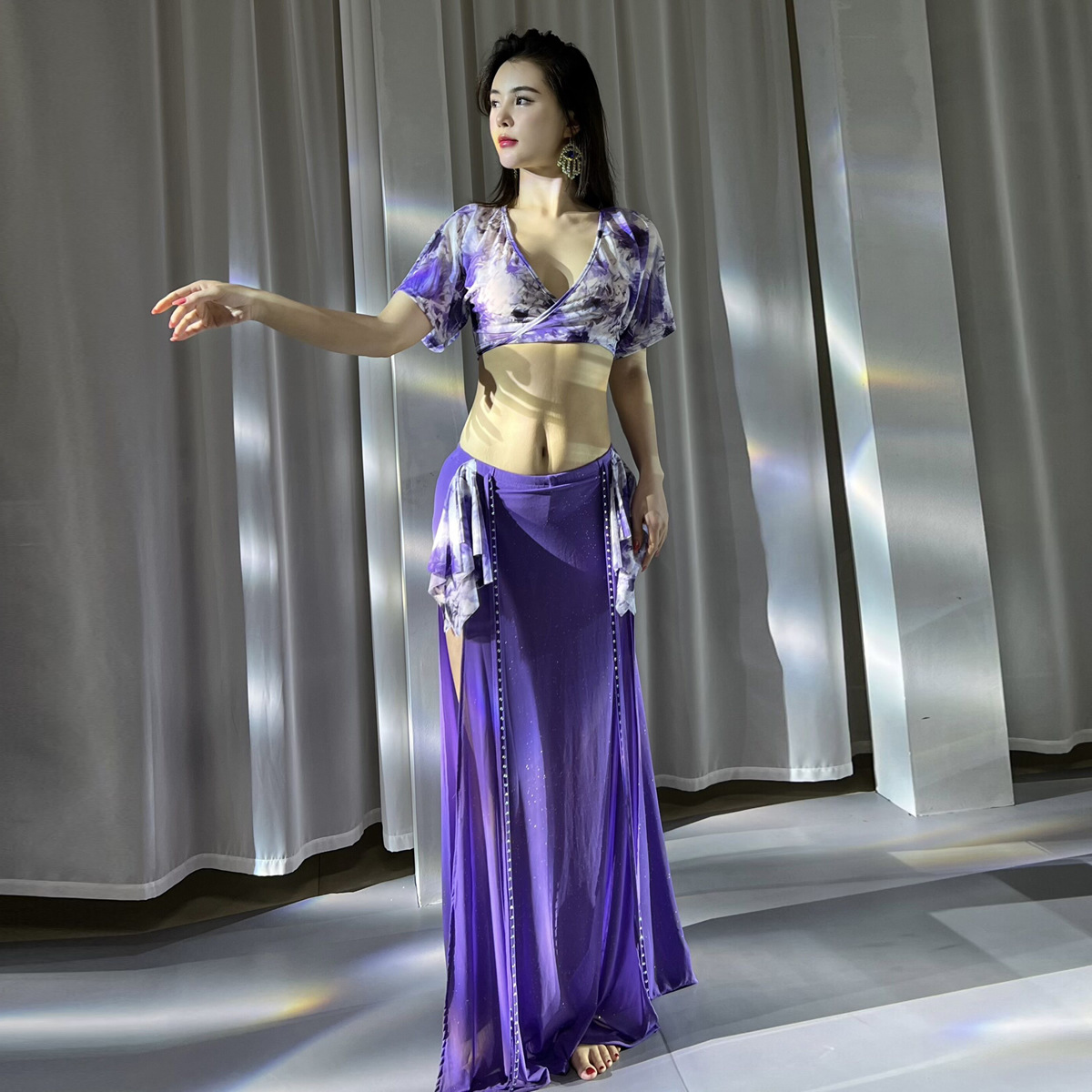 Pakaian tari perut setelan 2019 baru pakaian latihan tari Oriental modal musim panas ukuran besar rok latihan lengan pendek seksi
