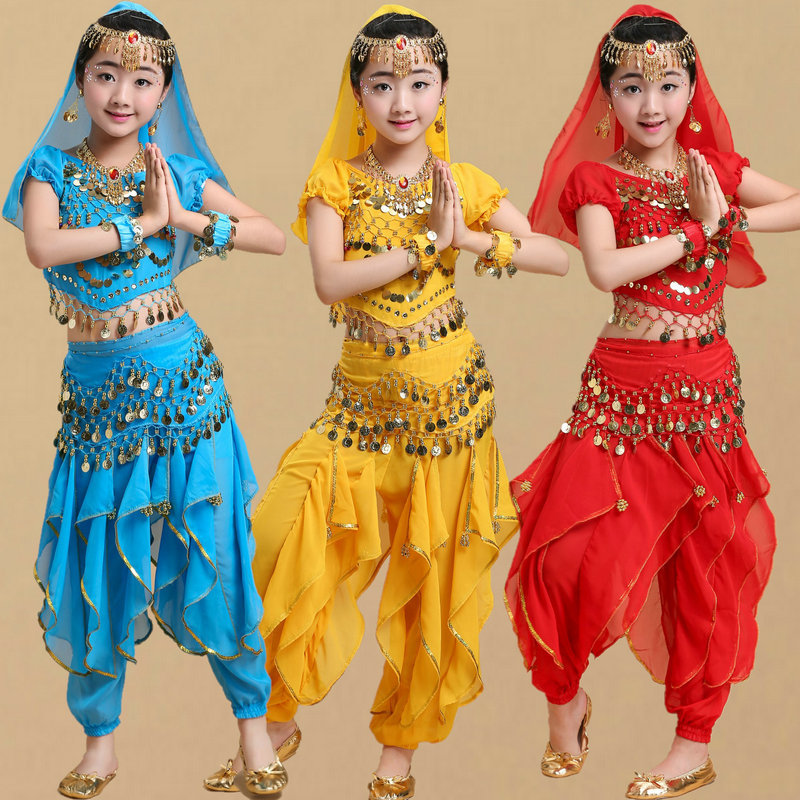 Pakaian Tari Anak-anak India Pakaian Pertunjukan Tari Nasional Xinjiang Tarian Anak-anak Celana Tari Perut Sorotan Set Pertunjukan Latihan