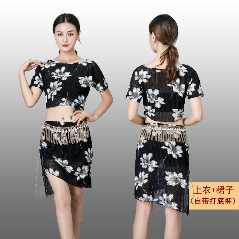 Pakaian latihan tari perut wanita, pakaian latihan pertunjukan baju rok pendek dewasa musim gugur dan musim dingin