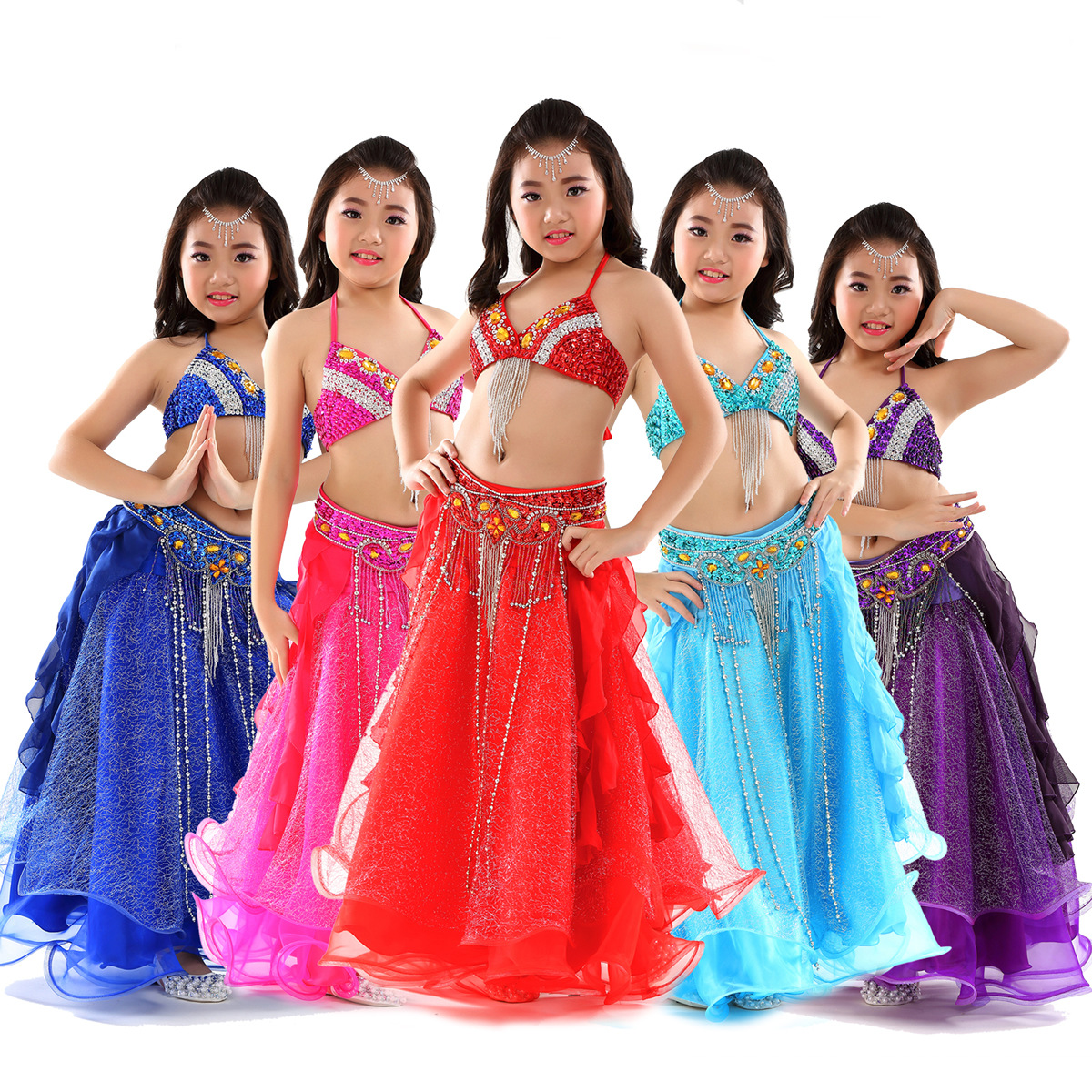Kostum penampilan anak-anak, kostum pertunjukan anak perempuan, pakaian tari perut, tari India, taman kanak-kanak