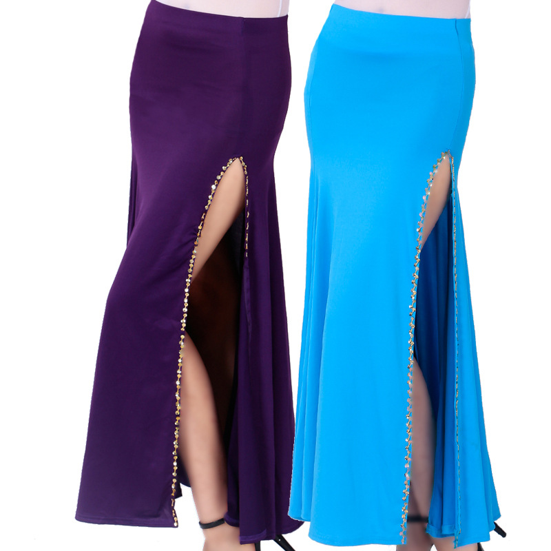 Rok tari perut pakaian penampilan tari India rok pinggul belahan satu sisi rok berpayet pakaian pertunjukan rok tari