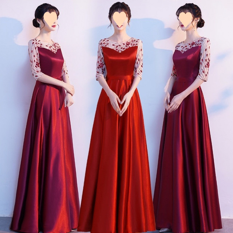 Gaun Pertunjukan Paduan Suara Besar Gaun Panjang Wanita Model Baru Pakaian Panggung Paduan Suara Merah Gaun Upacara Tuan Rumah Kompetisi