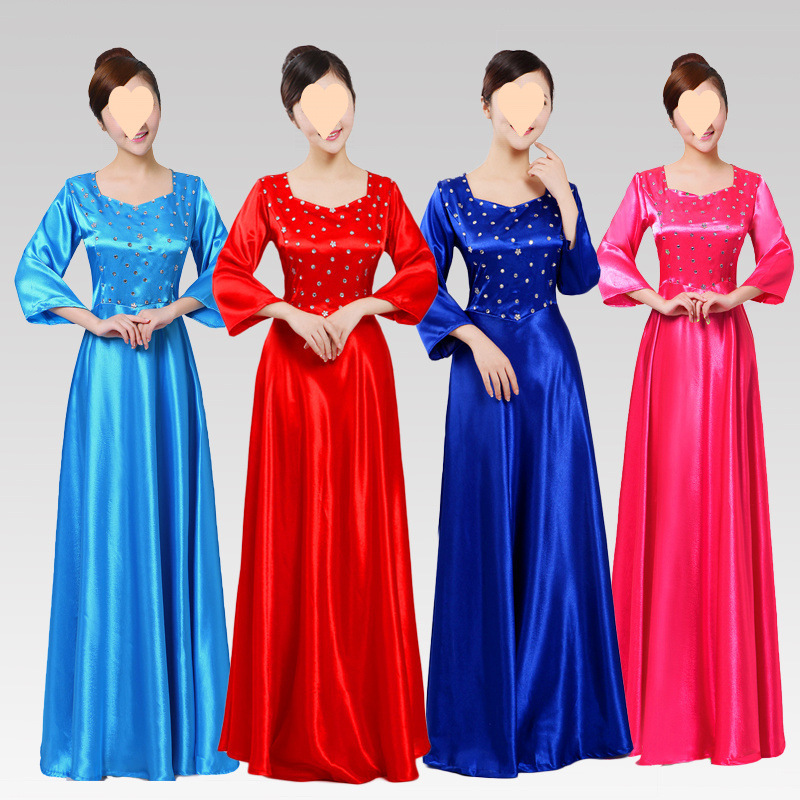Pakaian Pertunjukan Paduan Suara Besar Wanita Gaun Malam Elegan Gaya Tiongkok Setengah Baya dan Setengah Baya Pakaian Tuan Rumah Pakaian Siswa Pembacaan