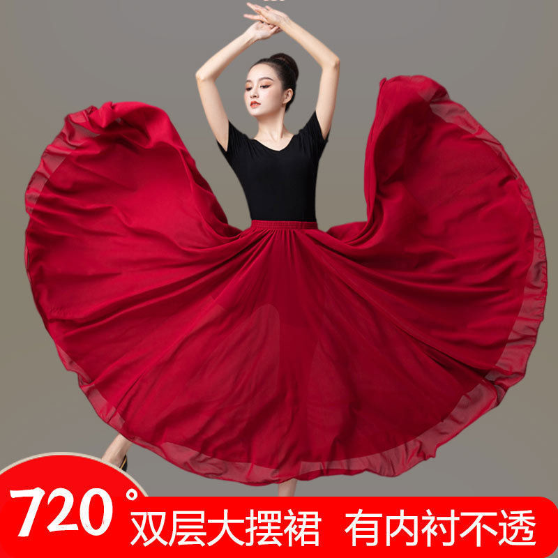 Rok Dancing Dancing Lapisan Ganda 720 Derajat Rok Panjang Tari Xinjiang Setengah Panjang Pakaian Pertunjukan Tari Klasik Pakaian Latihan Wanita